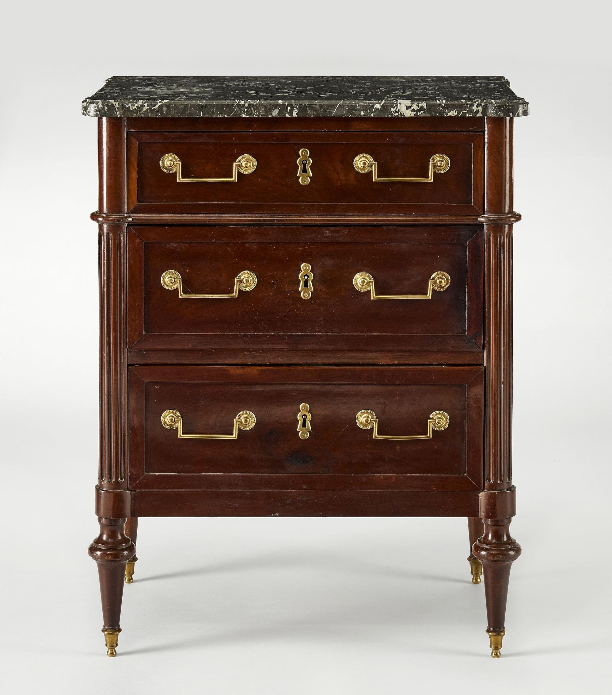 Toile enduite monogrammée, métal doré, H 37 cm