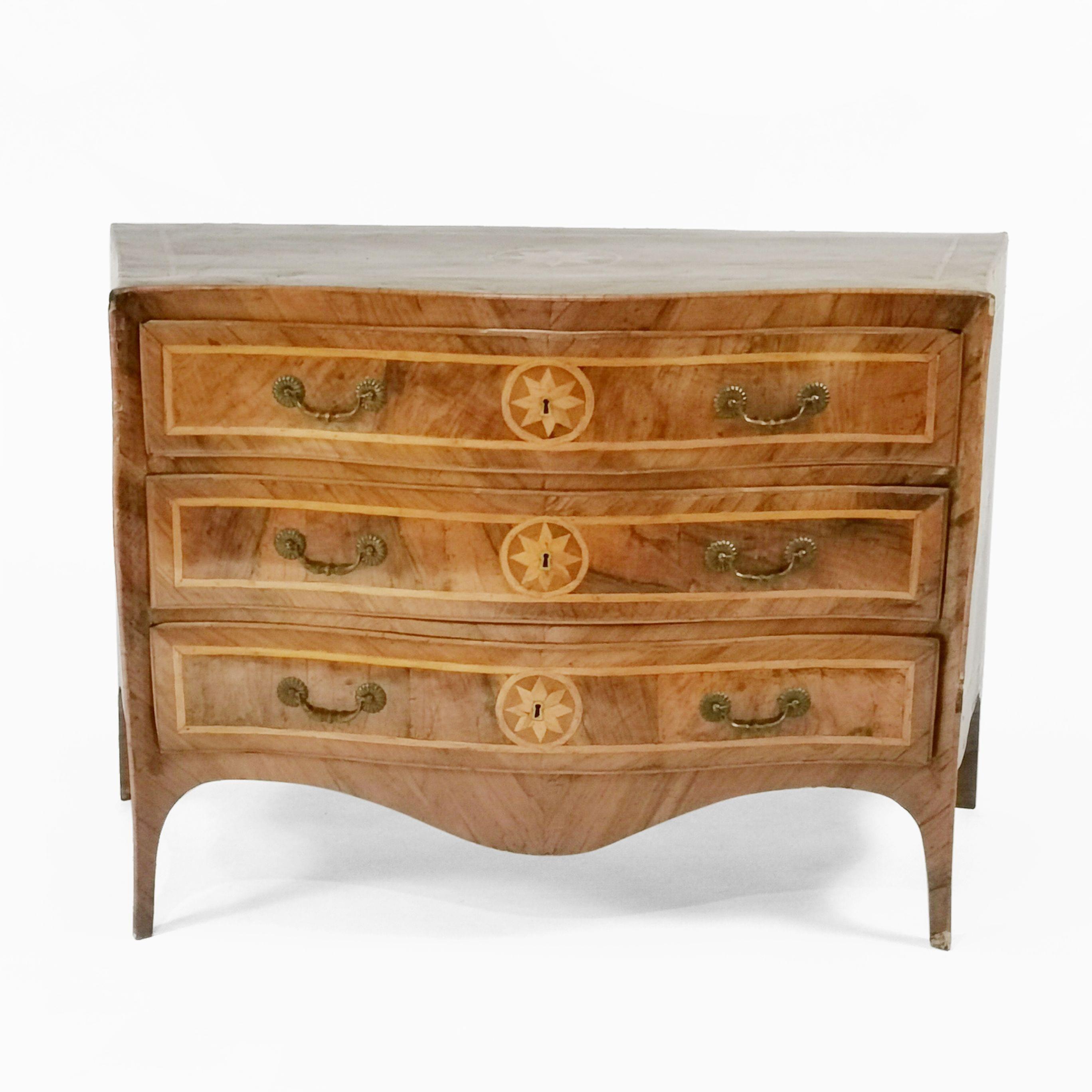 Trois tiroirs, marqueterie de bois fruitier à décor d'étoiles à huit branches, 97x140x60 cm