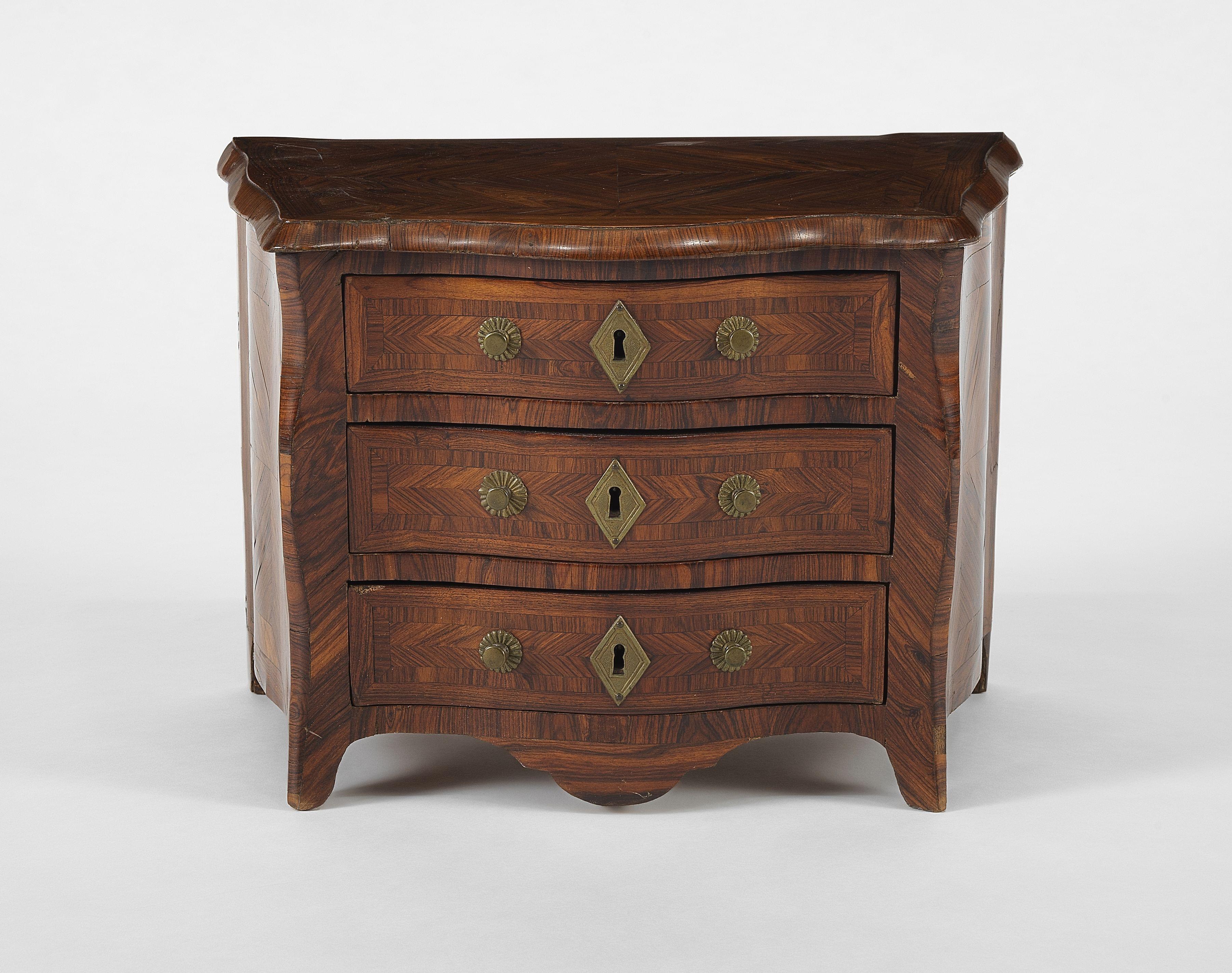 Trois tiroirs, placage de bois de violette et laiton, 33x46x29 cm