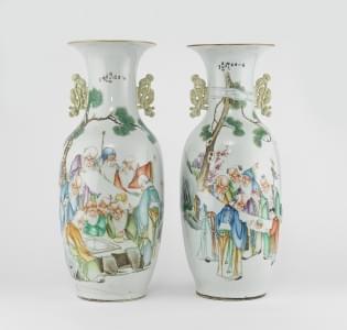 Porcelaine émaillée polychrome à décor de personnages, H 57,5 cm
