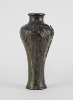 Bronze à patine verte à motif en léger relief de fleurs, H 29 cm