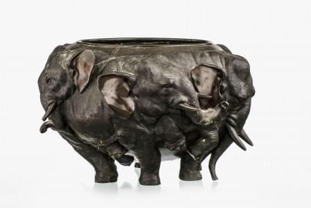 Trois sous-verre figurés en diorama et un sur socle, l'un compor...