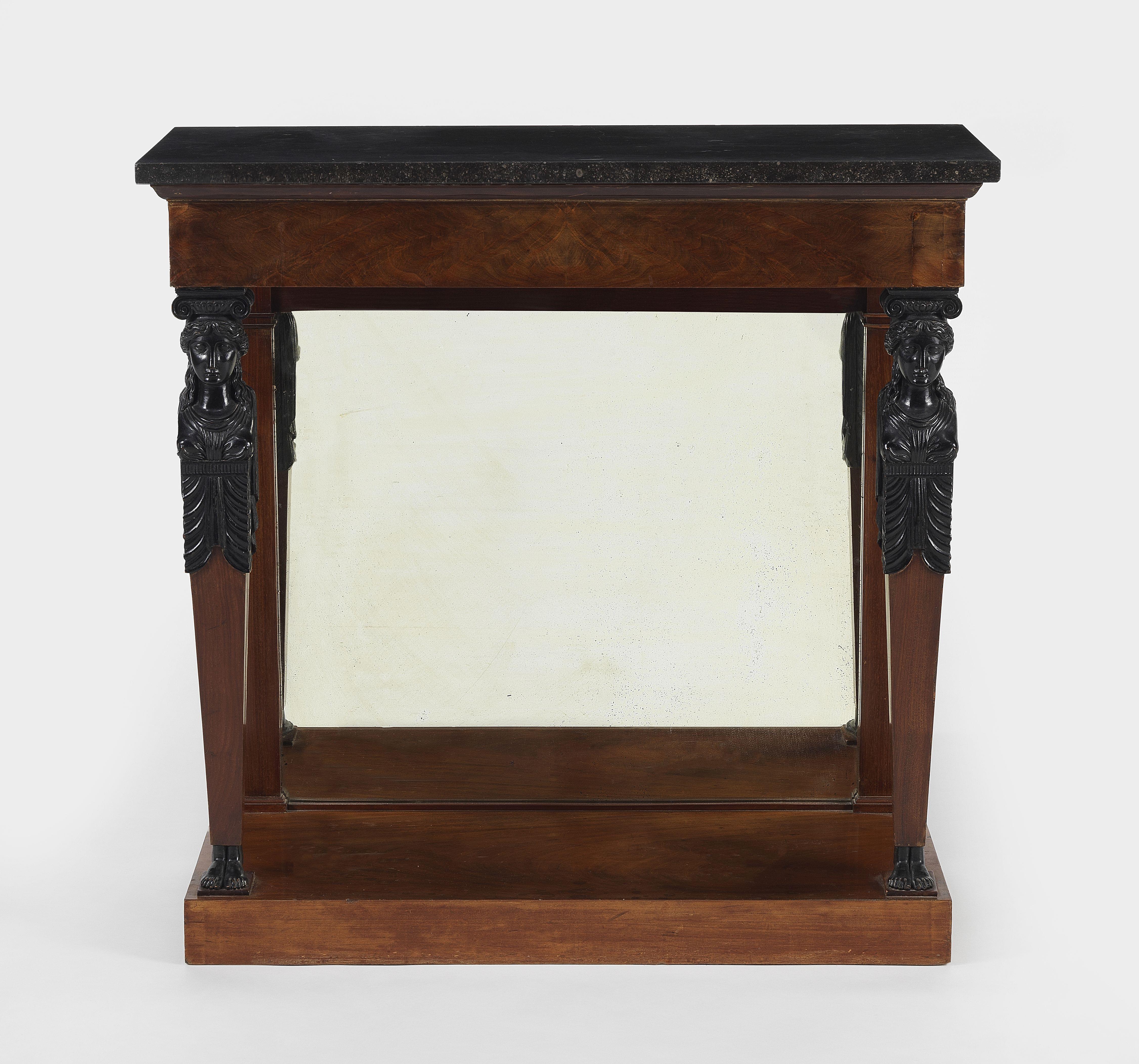 Montants à décor de cariatides, acajou, bois noirci et granit, 91x93x42 cm