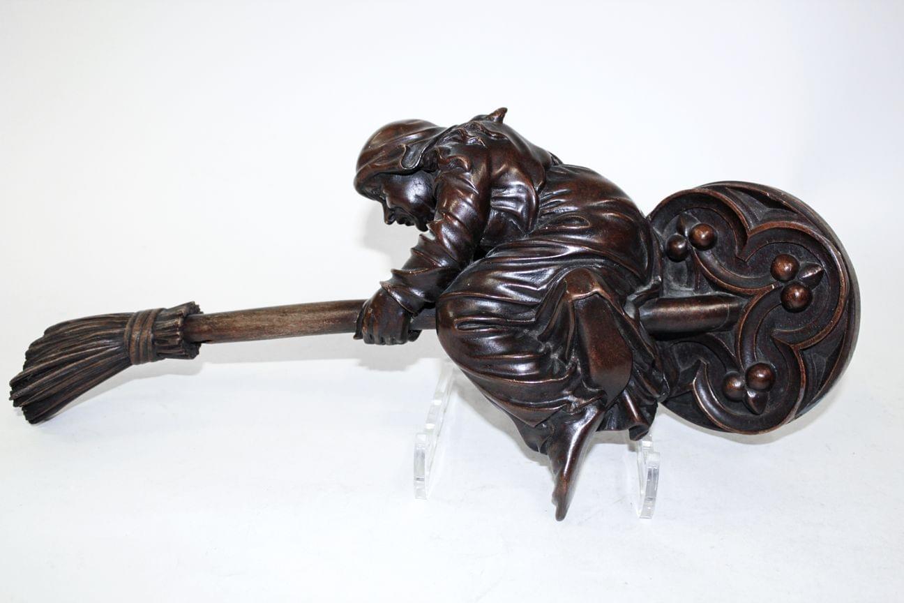 Ivoire sculpté, patine brune, signé, H 10 cm