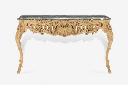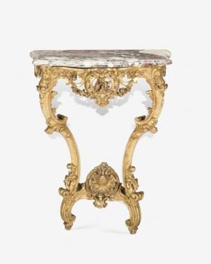 Bois sculpté et doré, marbre brèche, 92x73x44,5 cm