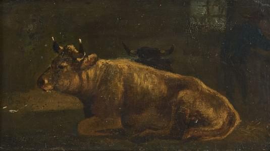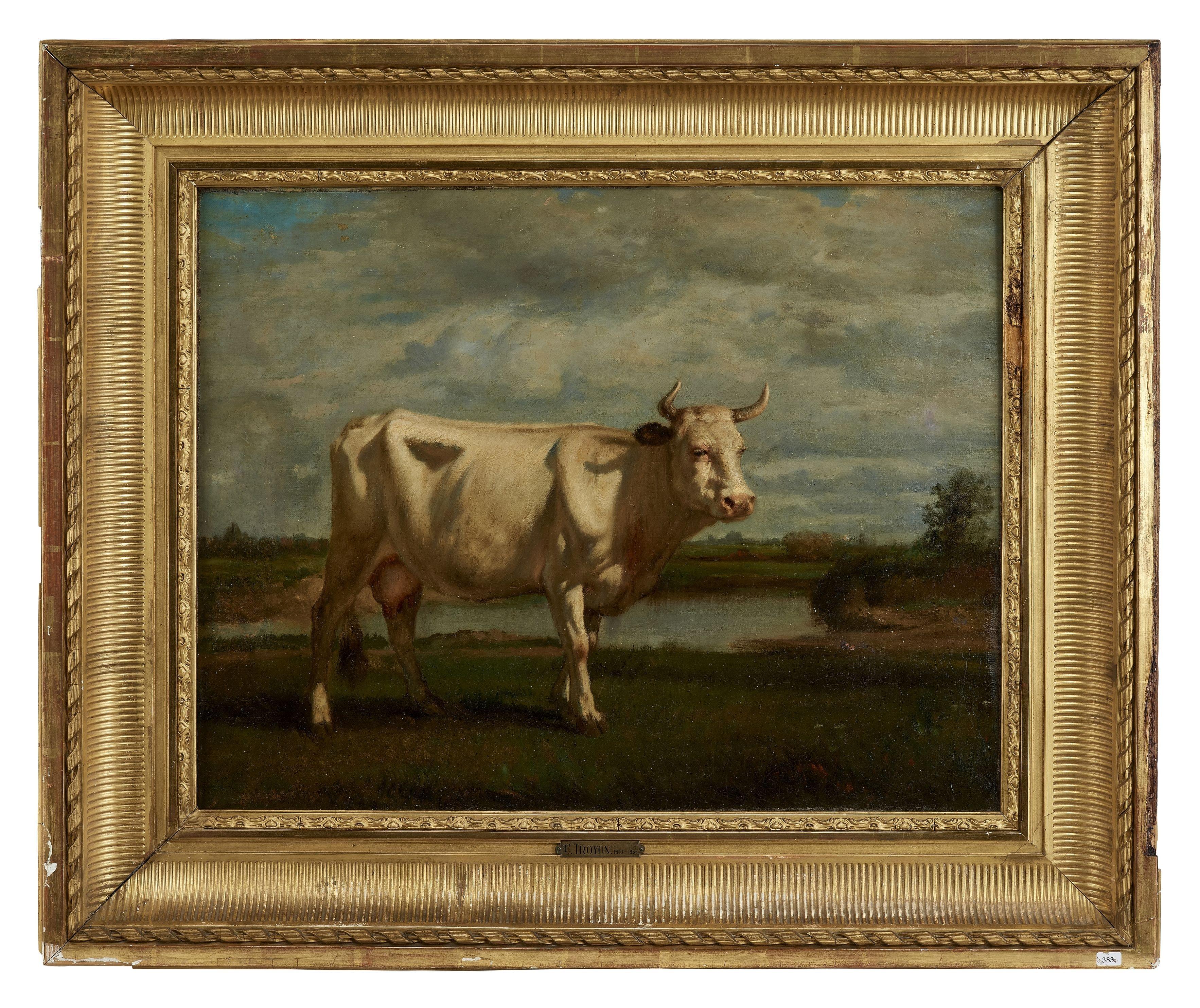 Etude de vache pour La mare aux canards, circa 1855, huile sur toile, intitulée et attribuée au dos, 58x60 cm
