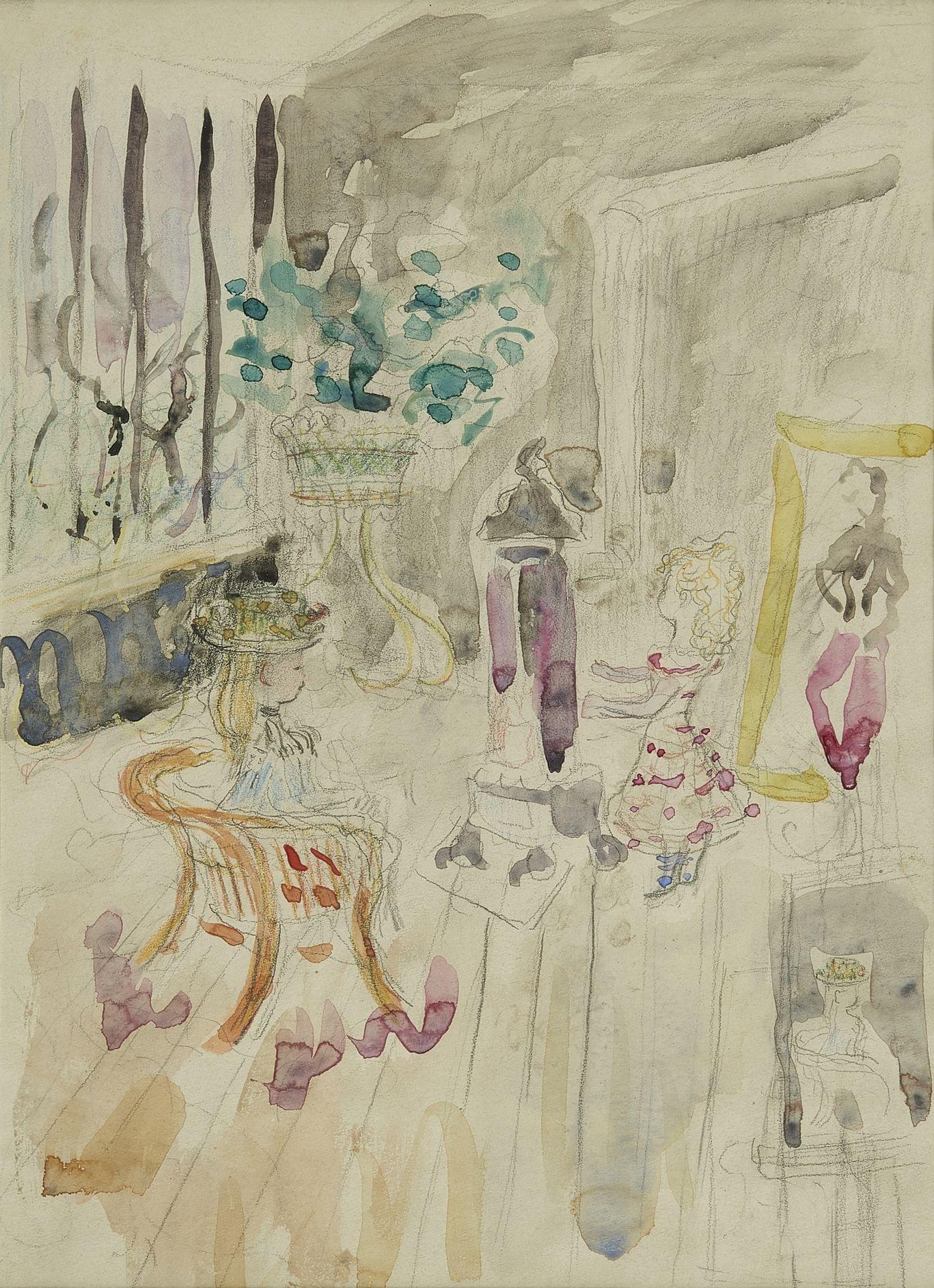 Scène d'intérieur, aquarelle et mine de plomb, 41x31 cm. Provenance: Galerie Paul Vallotton