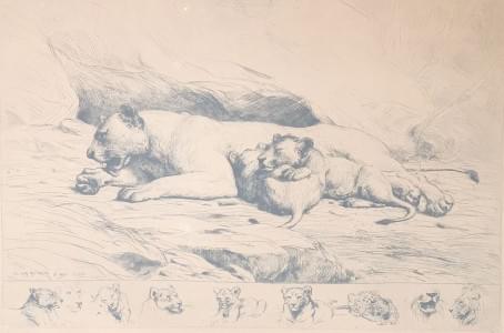 Lionne, gravure, signée à la mine de plomb, 8x14 cm
