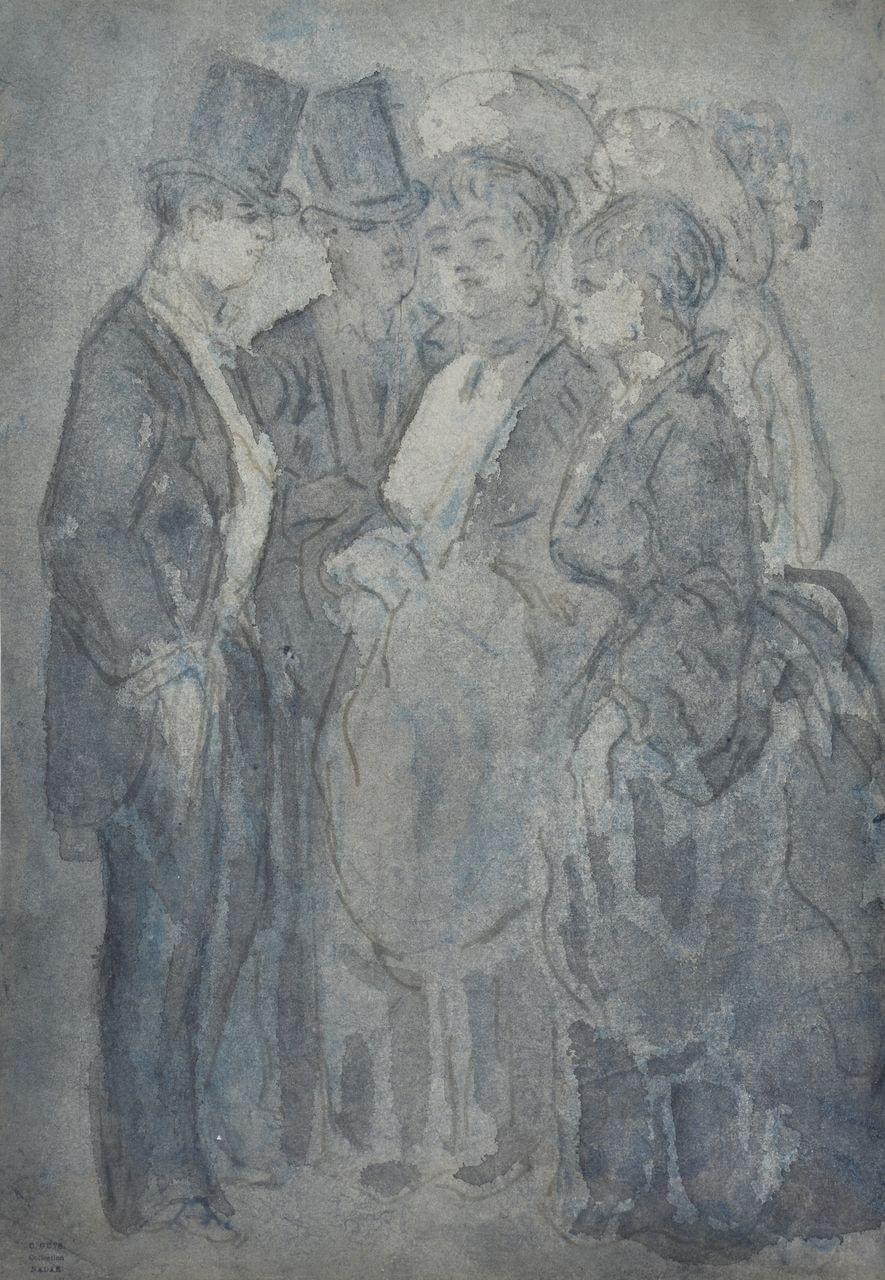 Femme au voile, crayon et lavis sur papier, non signé, 6x10cm
