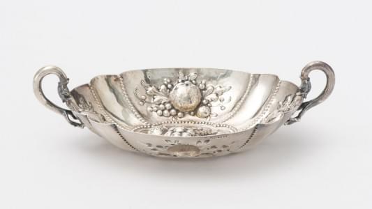 179. Grande corbeille rectangulaire en filigrane orné de médaillons n...