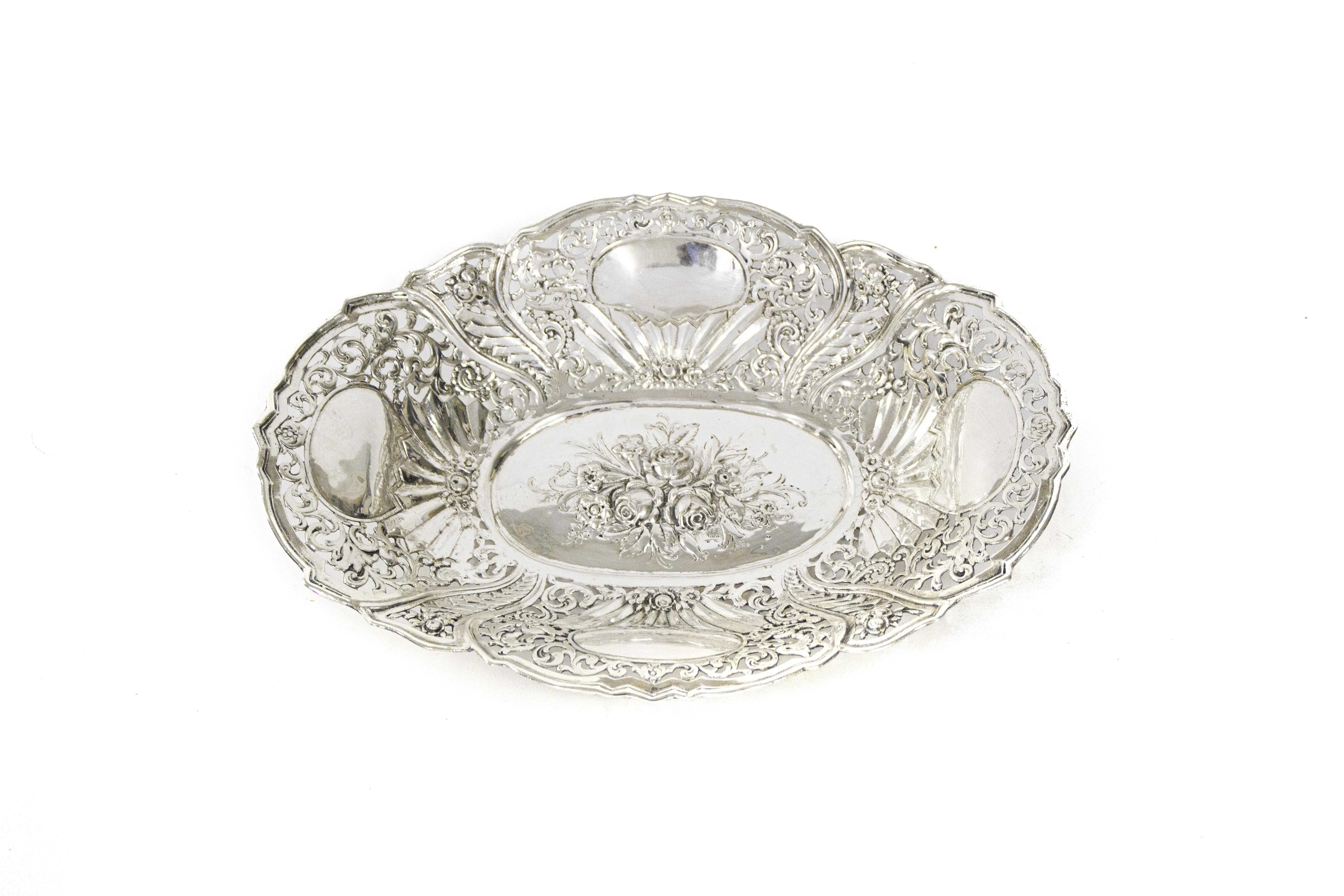 580. Corbeille sur pied à anse amovible, décor gravé de fleurs,