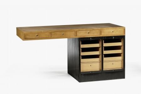 Quatre tiroirs et deux vantaux à rideau, bois blond, 82x160x70 c...