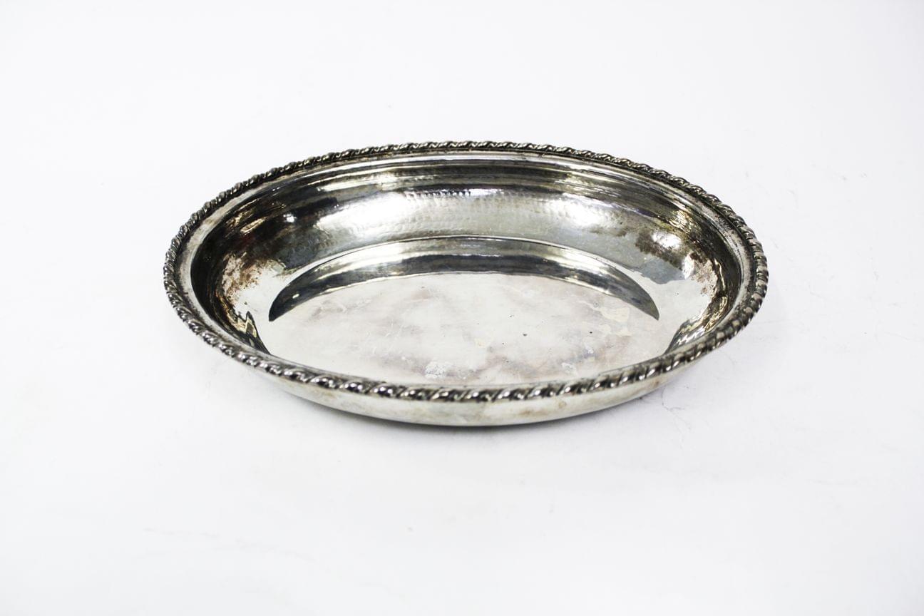 156. Grand plateau de service ovale à bordure ajourée de cannelures e...