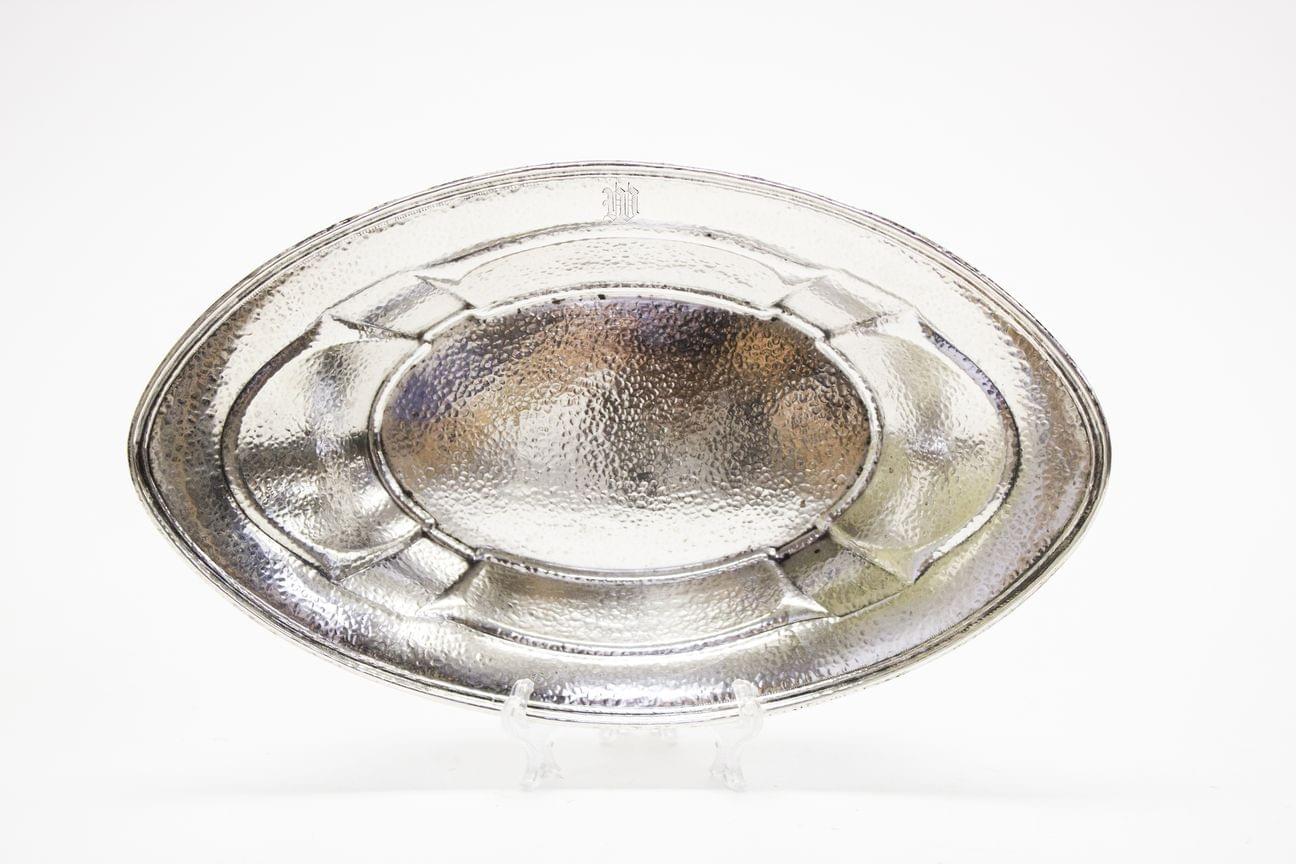 156. Grand plateau de service ovale à bordure ajourée de cannelures e...
