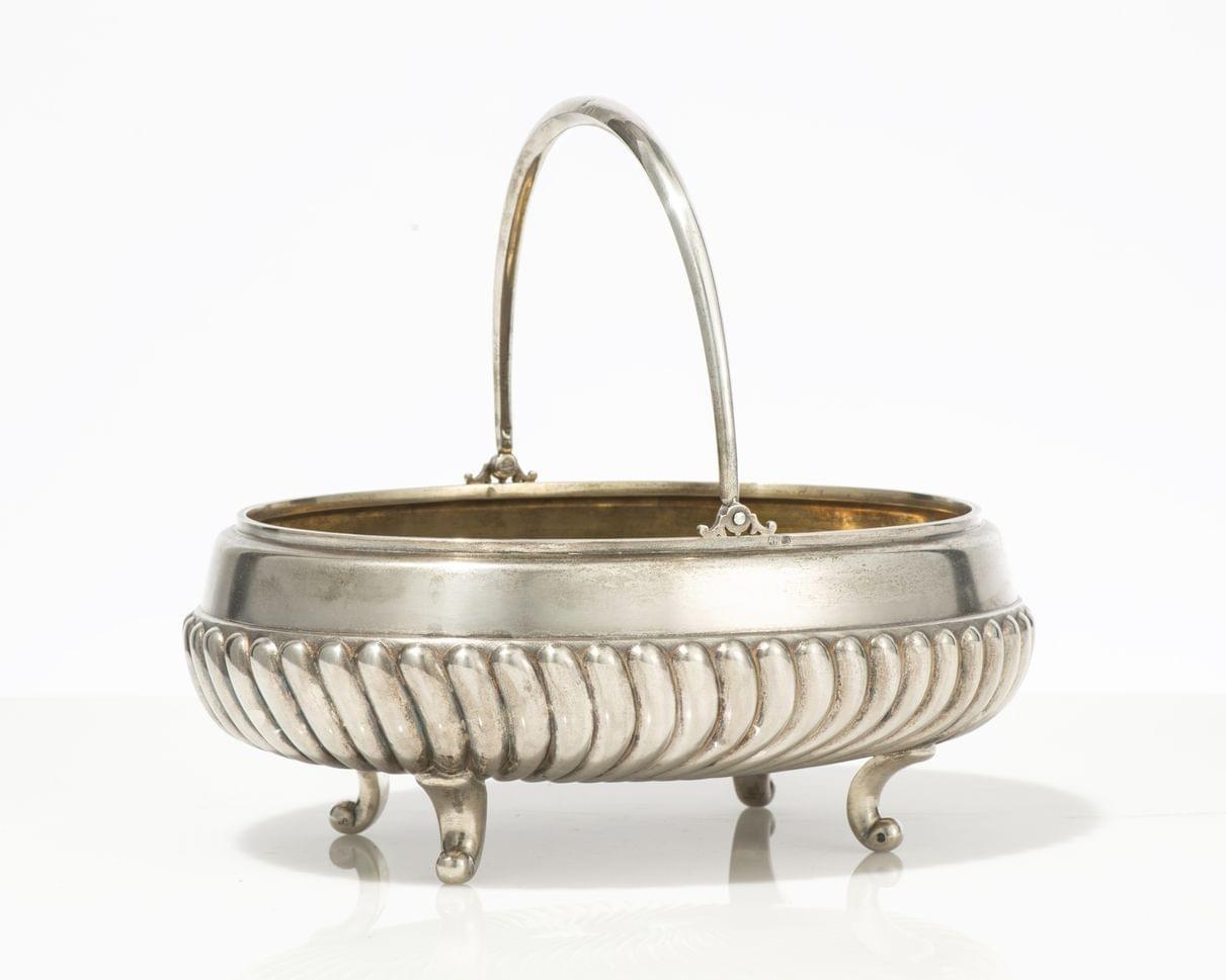 150. Corbeille en cristal taillé et monture à anse amovible ornée d'a...
