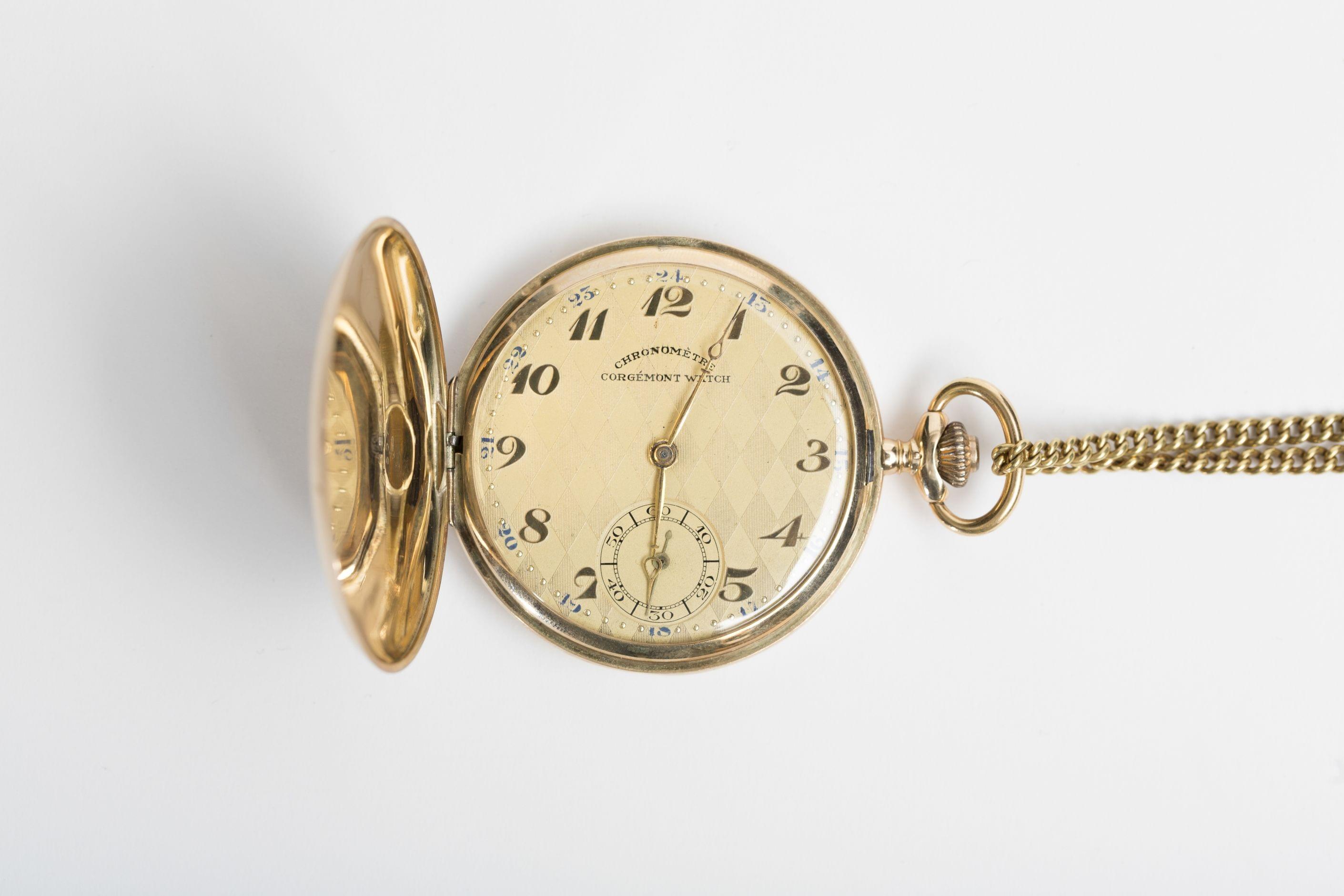 Cadran blanc émaillé, aiguilles dorées, chiffres romains bleus,...