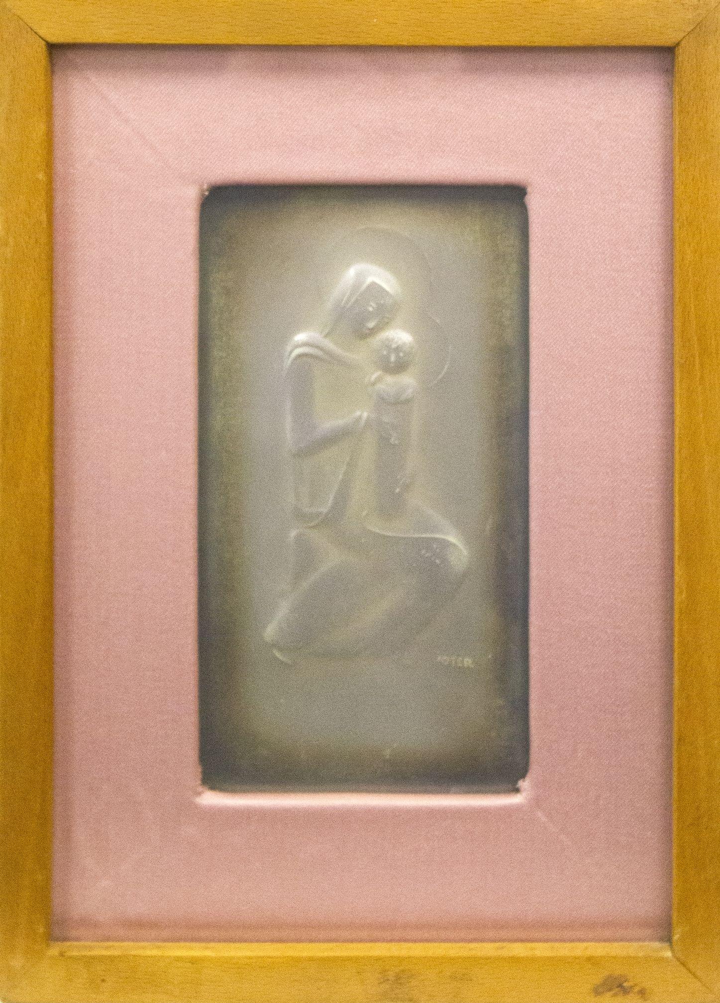 Vierge à l'enfant, métal gravé, 19x10 cm