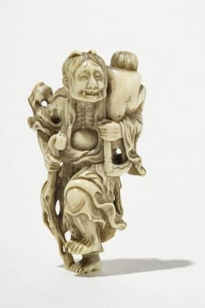 704. Vieillard portant un enfant sur le dos, netsuke, Japon, circa 19...