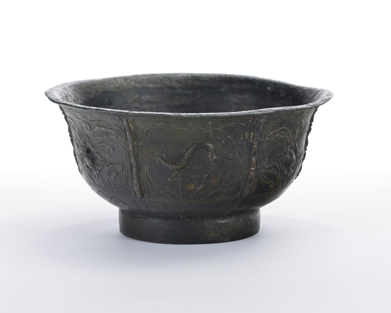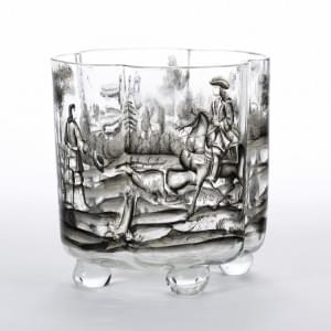 3165. Coupe quadrilobée à décor peint en grisaille de scènes de chasse