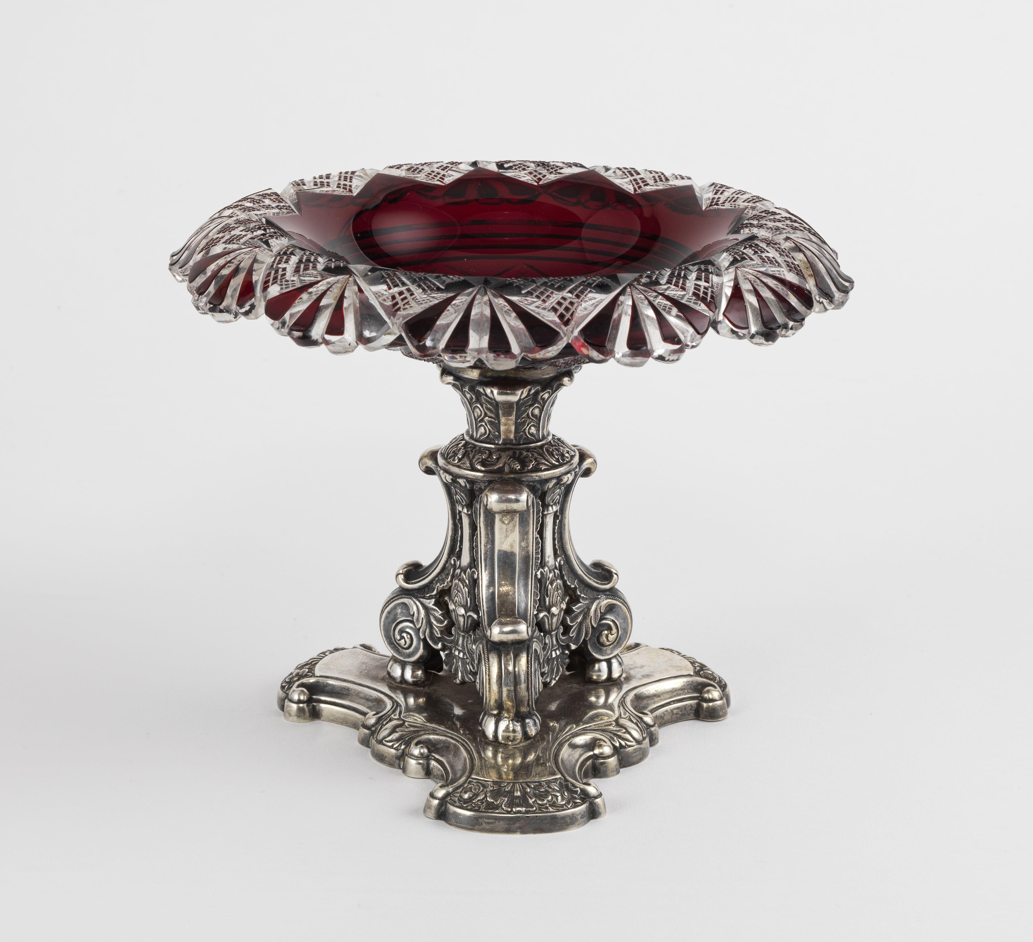 Empire allemand, argent et cristal de Bohème, H 15,5 cm
