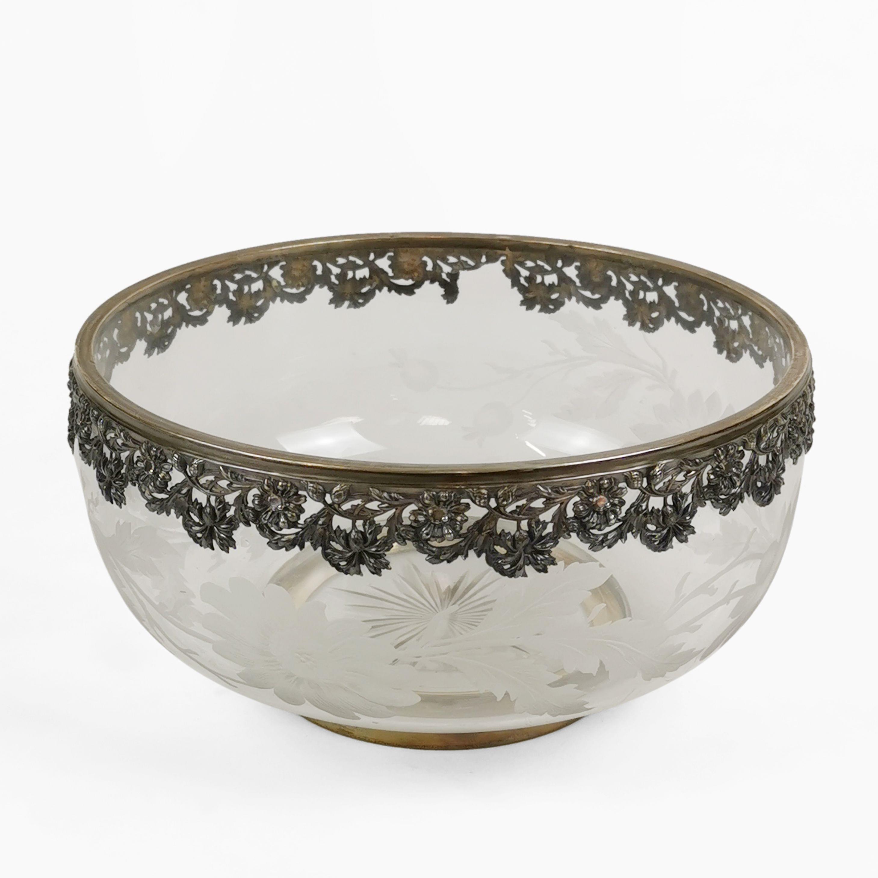 3742. Coupe tripode et plat rond gravé d'arabesques