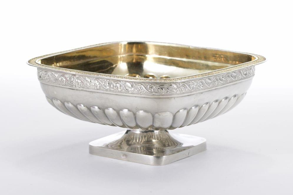 159. Coupe carrée sur piédouche à bordure de palmettes et motif de godrons