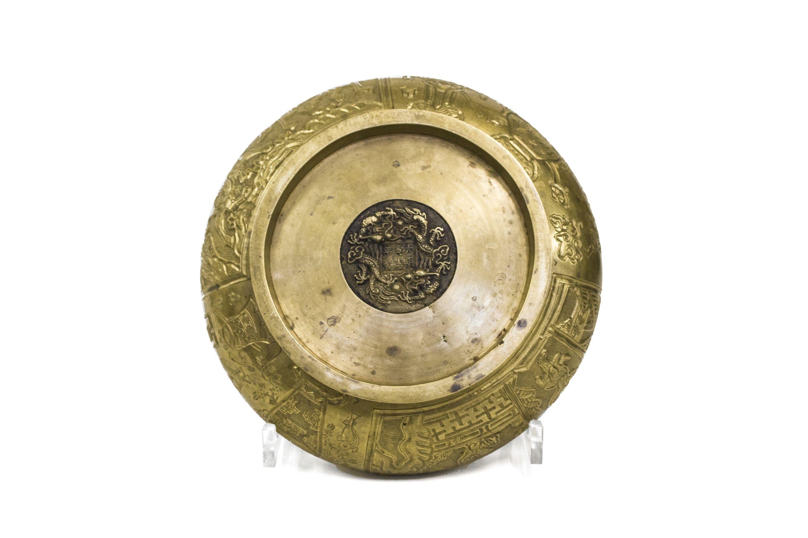 Bronze doré à décor de personnages et cavaliers et vases, marqué sous la base, D 22 cm