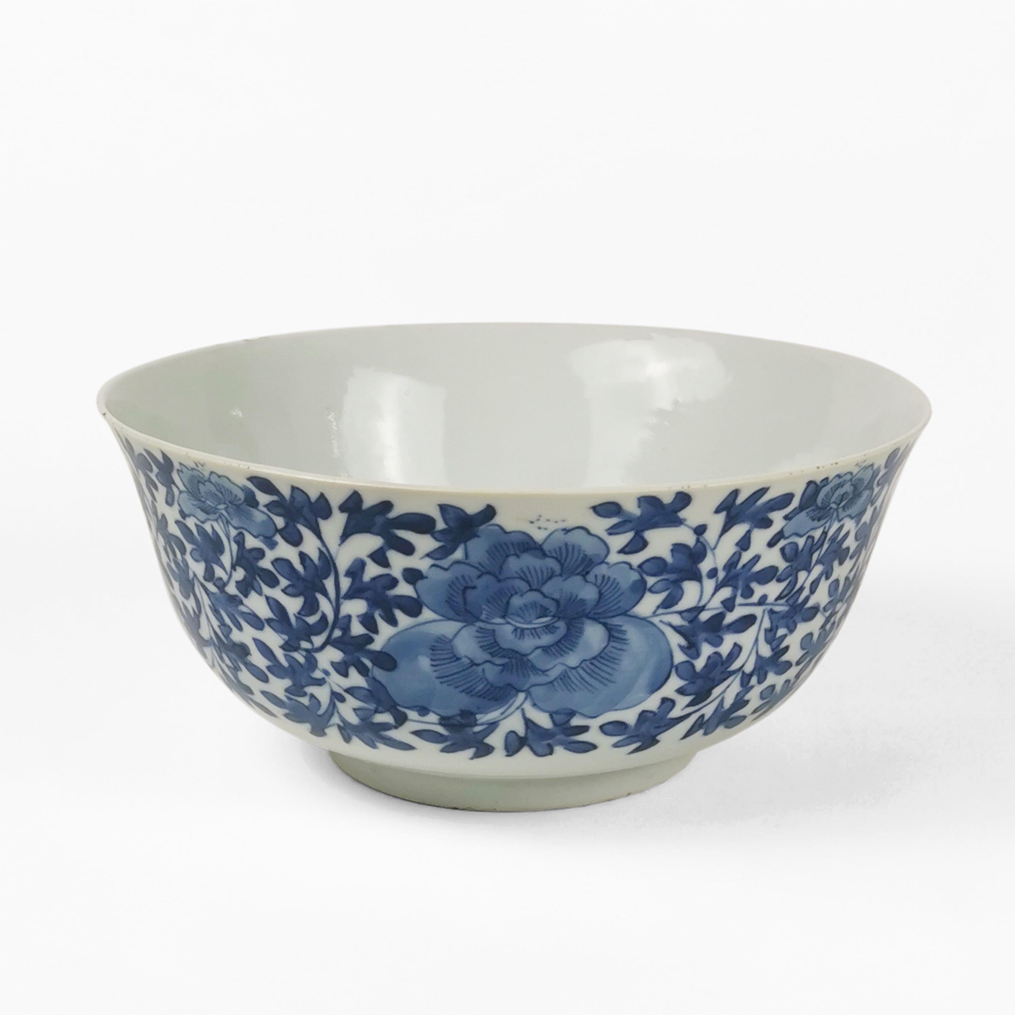 Porcelaine émaillée bleu blanc à décor de fleurs, D 22 cm