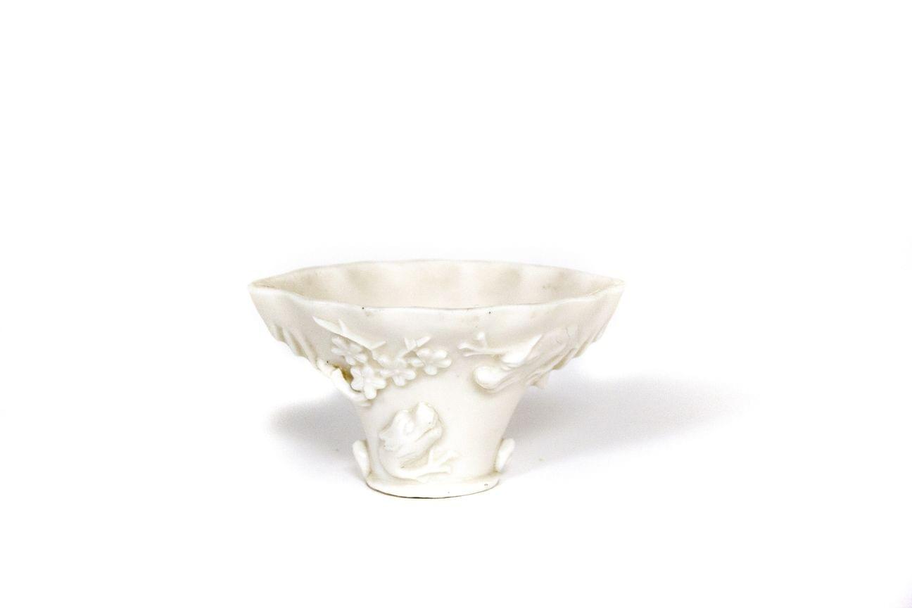 Porcelaine émaillée blanc, H 12,5 cm. Provenance d'après une éti...