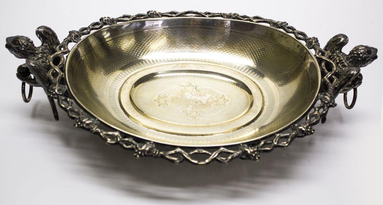 74. Tcharka à décor repoussé à l'intérieur d'animaux marins et de ri...