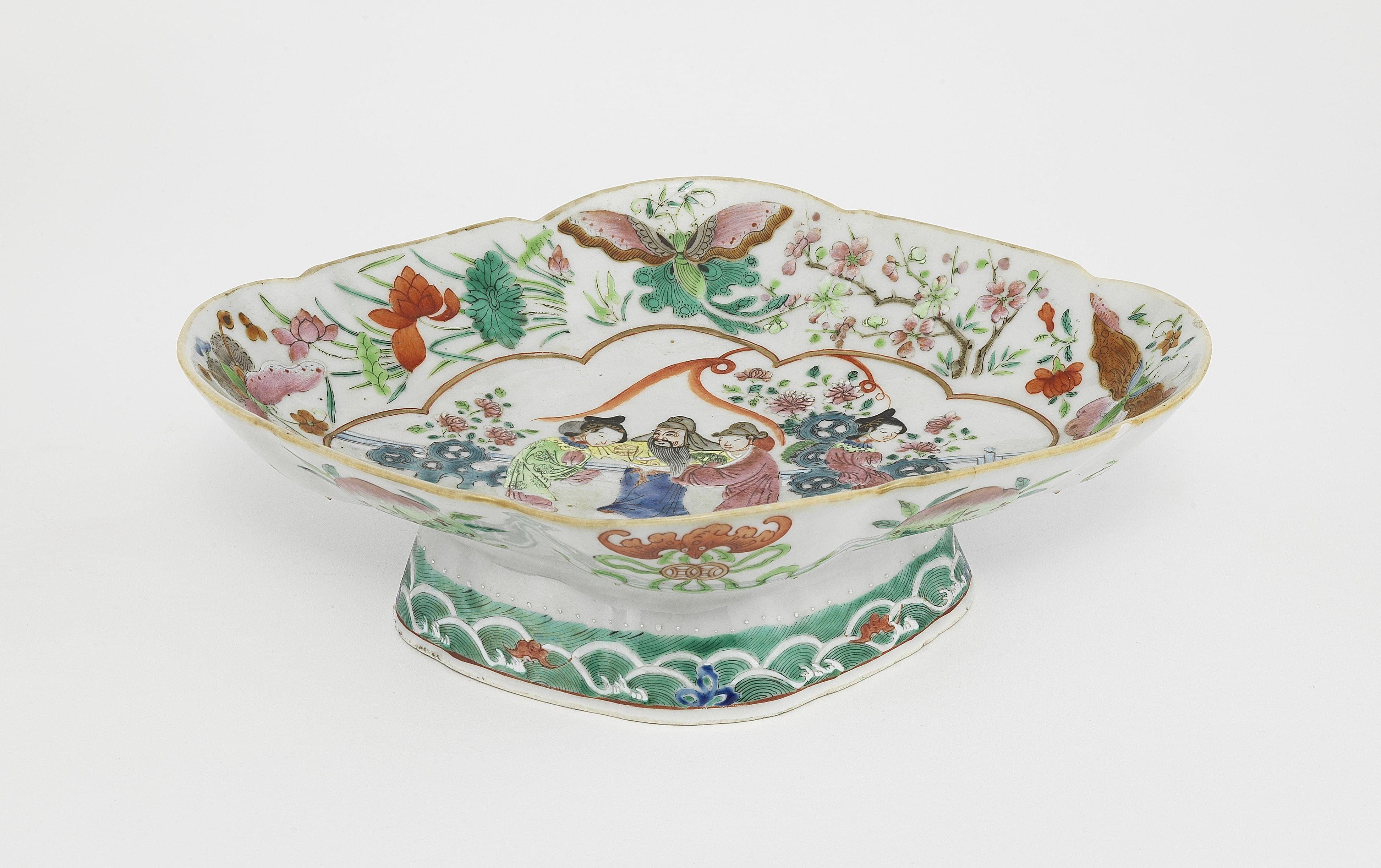 105. Bol à punch sur talon à décor repoussé de rinceaux et oiseaux