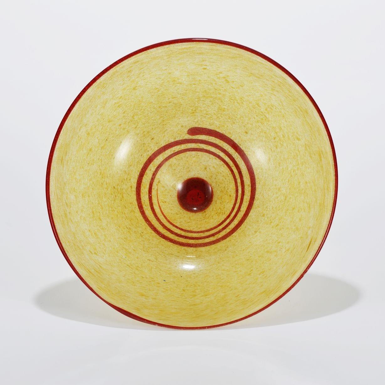 Murano, verre givré jaune et filet rouge, D 34 cm