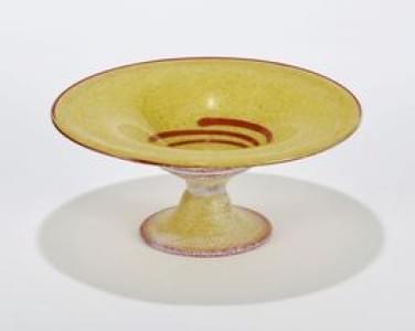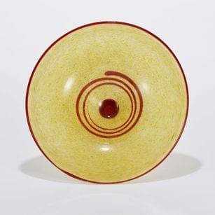 Murano, verre givré jaune et filet rouge, D 34 cm