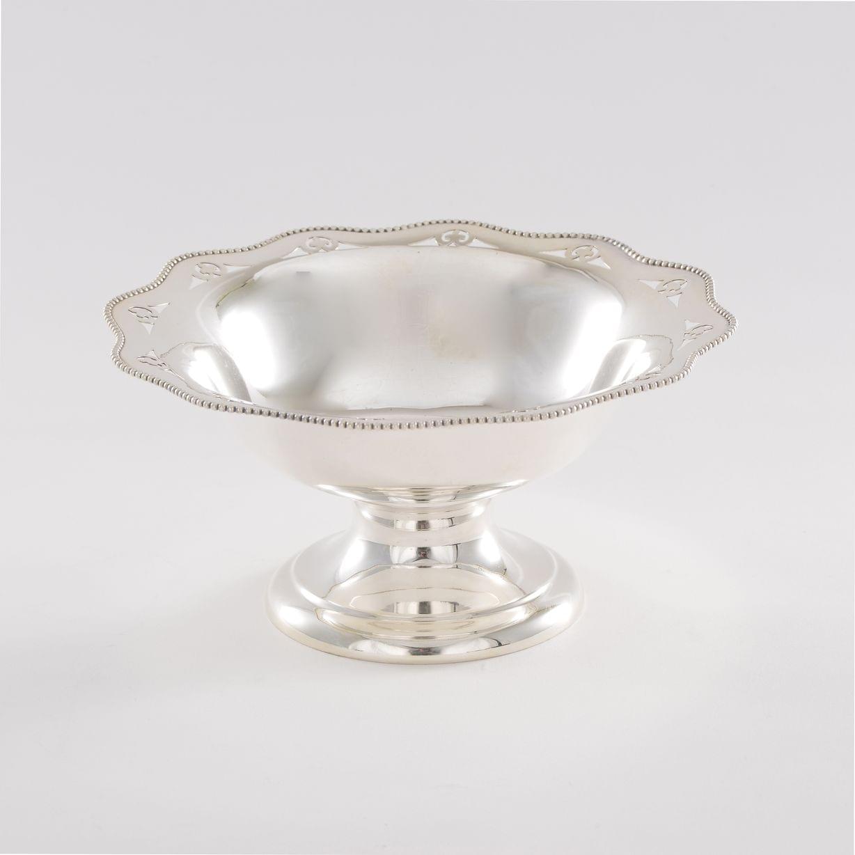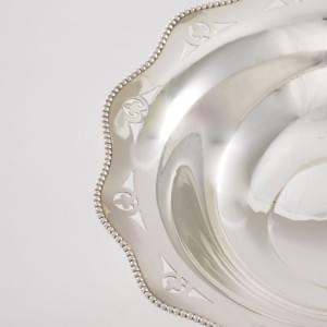 bordure ondulée ornée de perlettes et ajourée de trèfles, argent, Allemagne, gravée "Ola V 1926", prix de régate du 6m50 de John Revilliod-de Budé, argent 800, D 19 cm, 245g