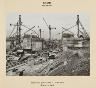 164. ALSACE. KEMBS: Construction du barrage sur le Rhin à Kembs : ter...