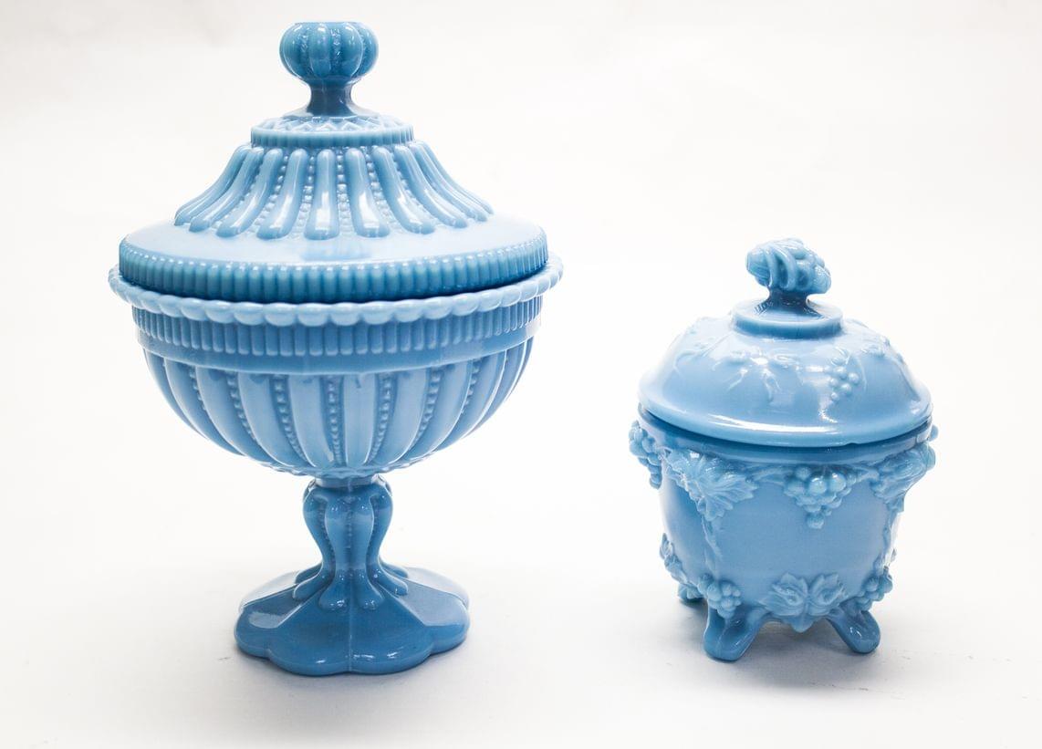 Opaline bleue turquoise, H 23 et 15 cm