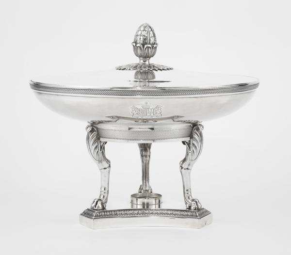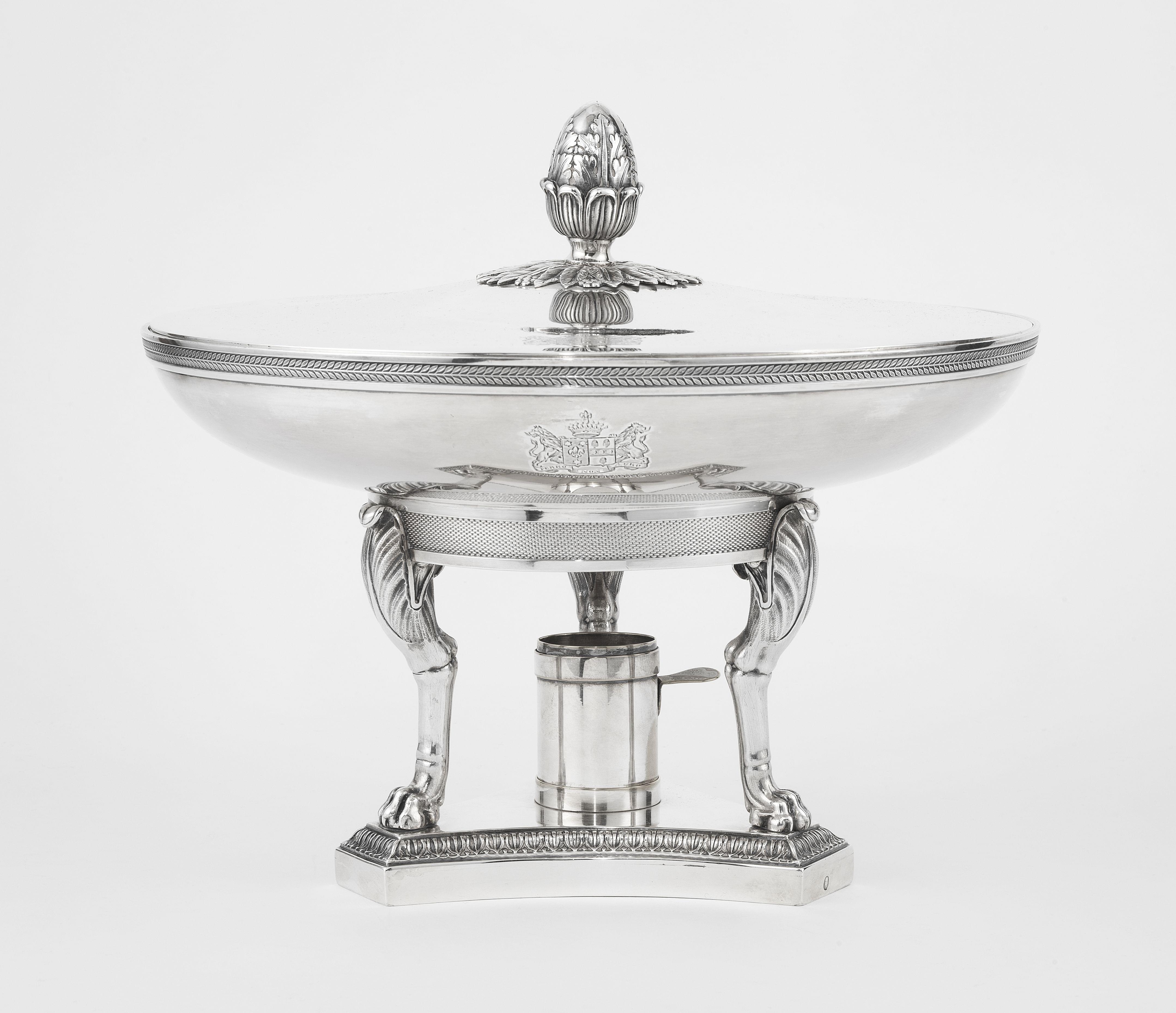 221. Coupe tripode couverte formant réchaut d'époque Empire armorié de Gasparin-Boissier,
