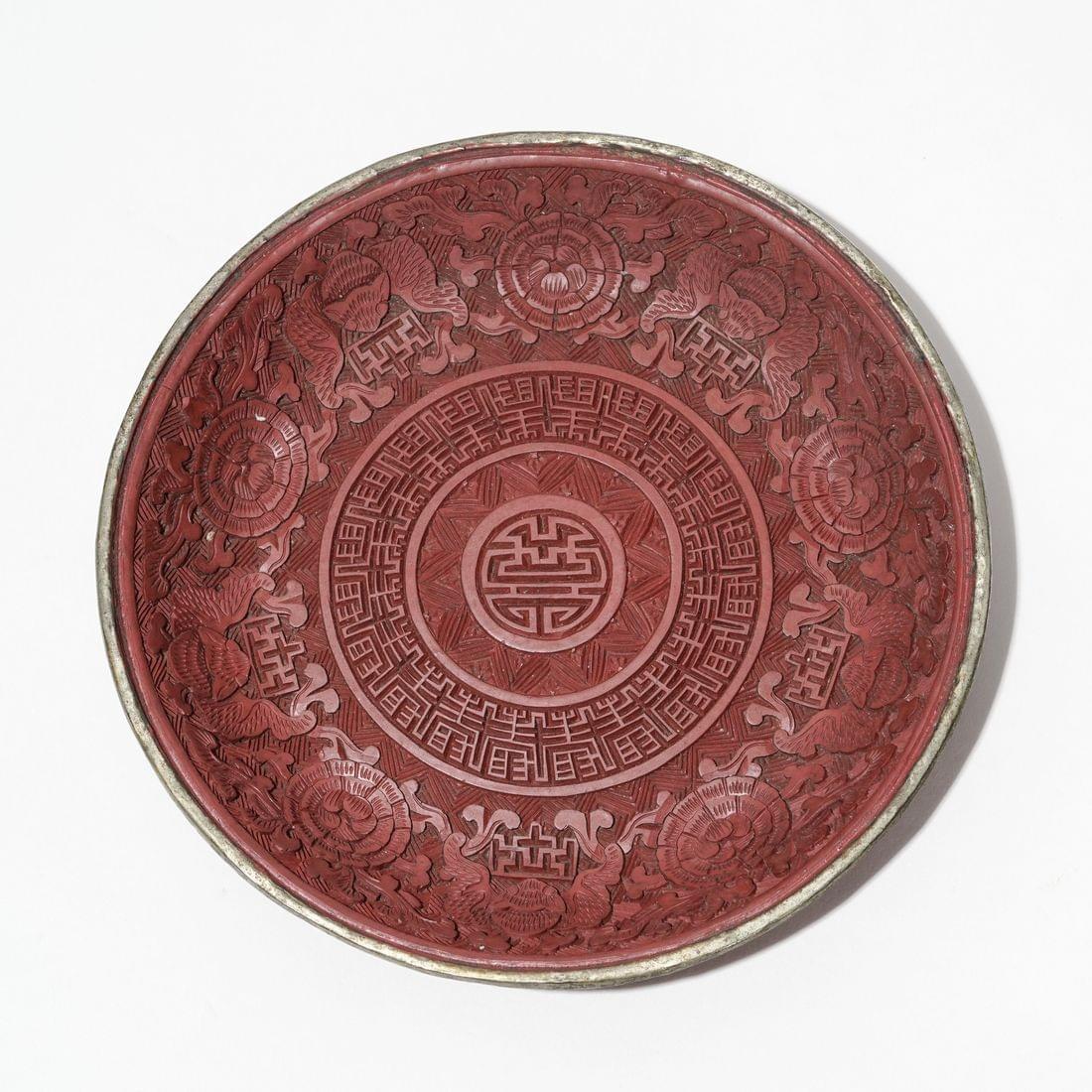 Laque de cinabre sculpté, D 13 cm