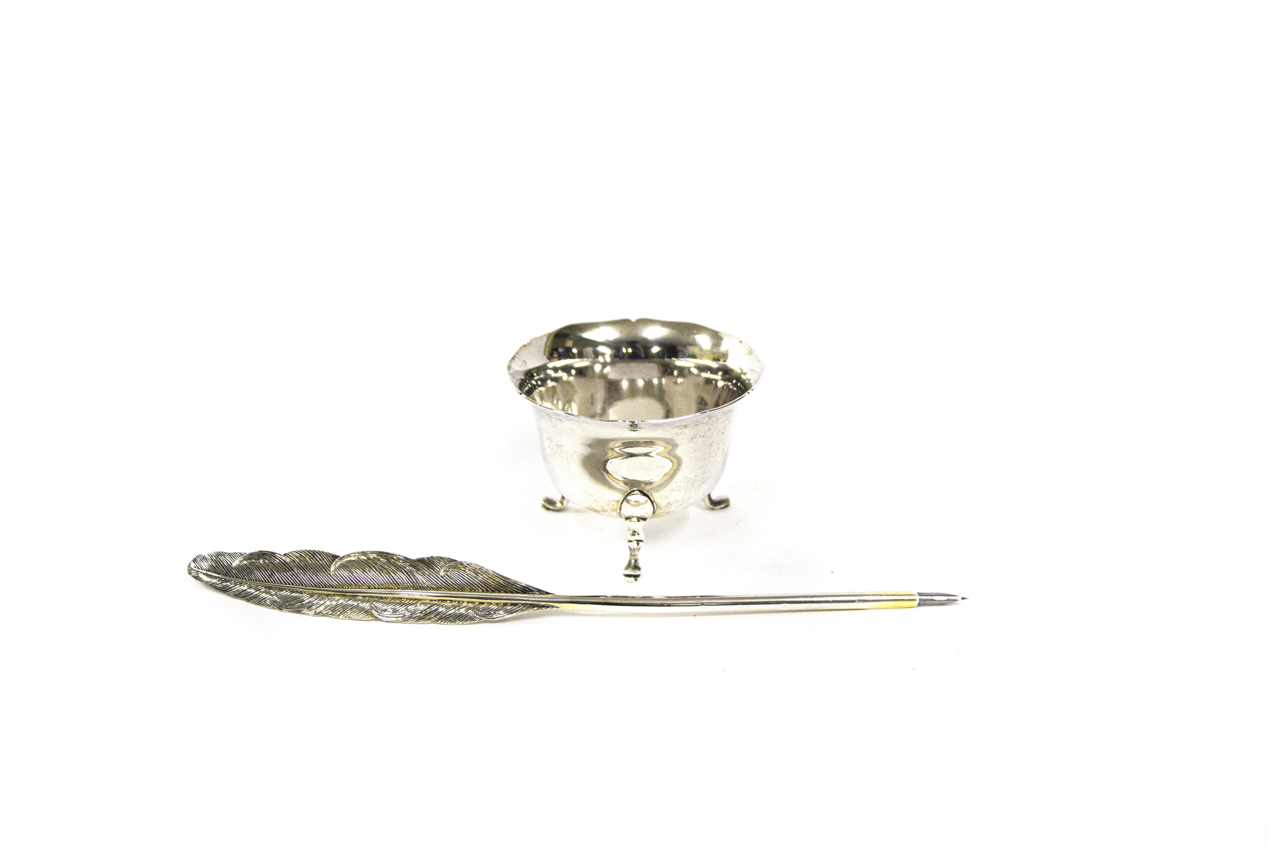 Métal doré, plume en or et or gris 750, L 14 cm, dans son écrin...
