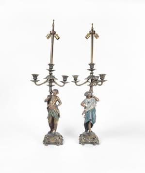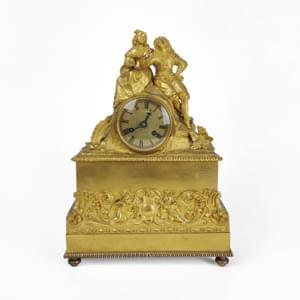 4121. Pendule en bronze doré surmonté d'un groupe figurant un couple g...