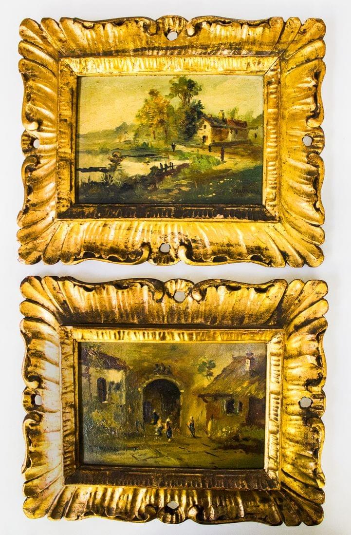 Paire de payages animés, huiles sur cartons signées E. Tavara, 17 x 24 cm