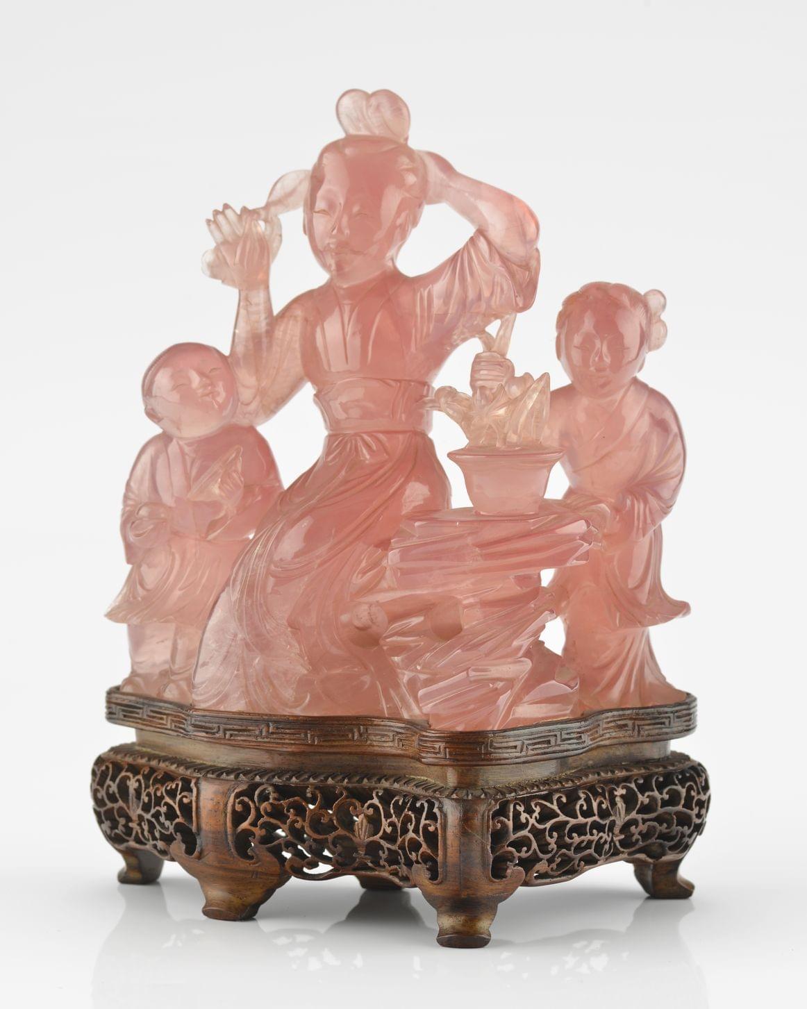 Groupe en quartz rose, Chine, début XXe s, H 15 cm