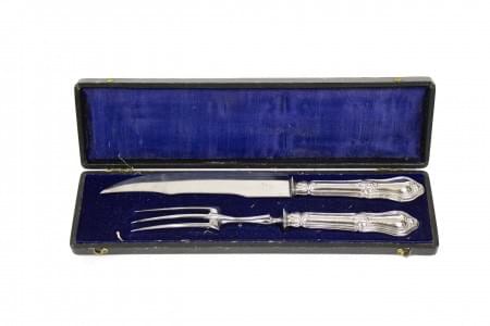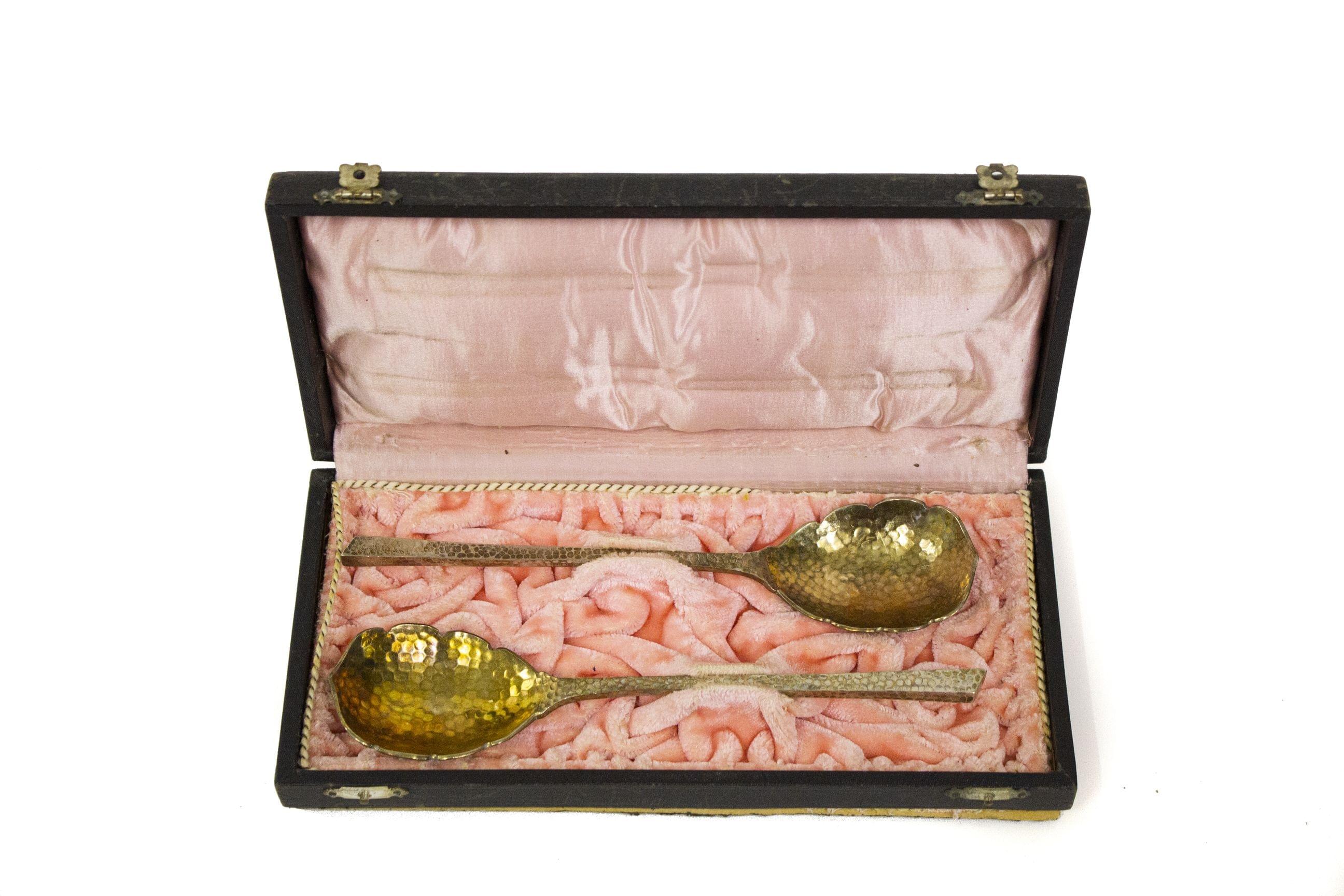 3472. Couverts à découper et deux cuillères de service martelées