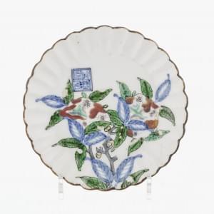 Porcelaine émaillée polychrome à décor de pêches, D 18,5 cm