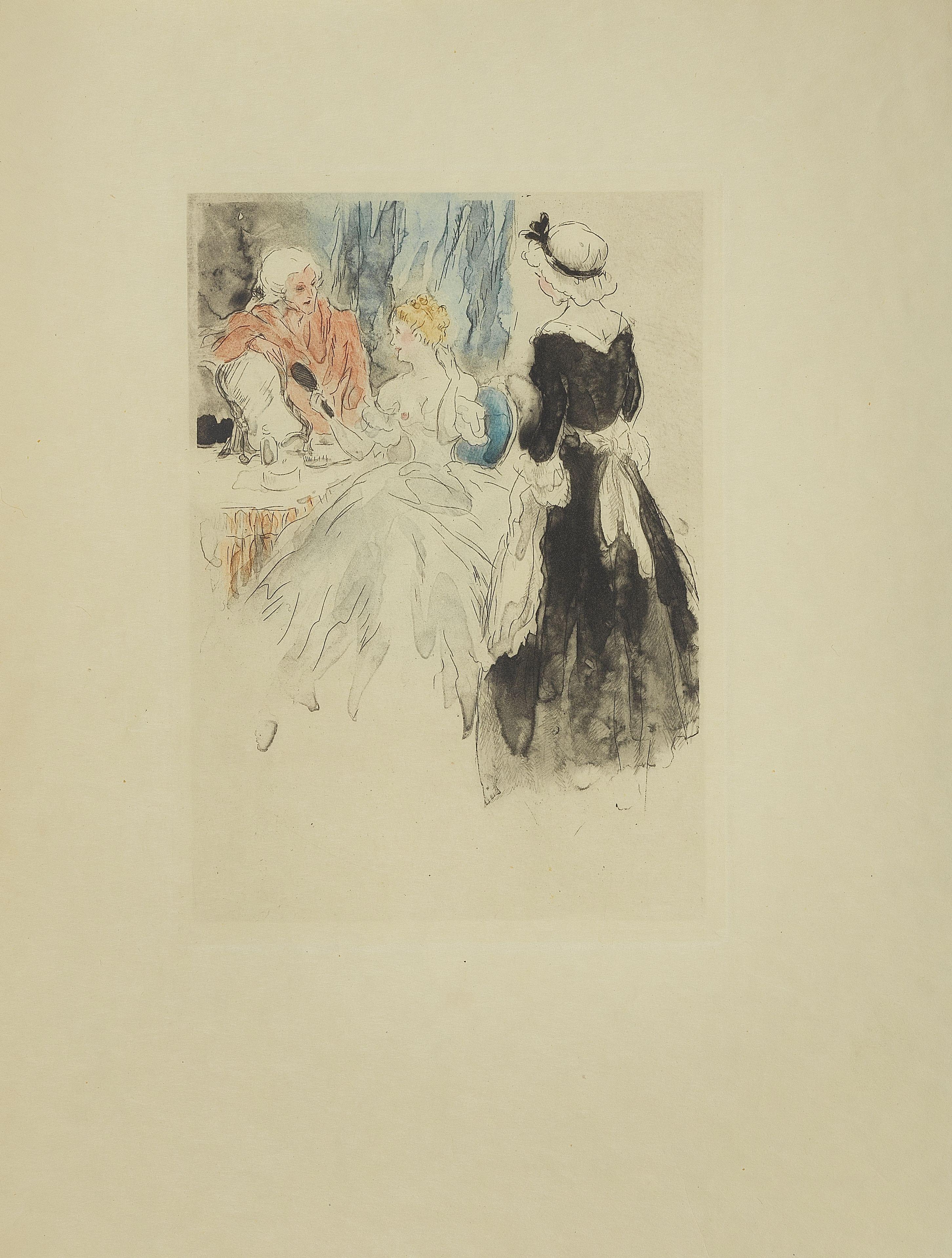 In 4° en feuilles sous chemise et étui. Remarquable édition illustrée de 25 eaux-fortes en couleurs de Louis ICART. Un des 15 exemplaires num. sur Japon, il porte le n° 9, et comprend un dessin original, deux états des eaux-fortes, les gravures dans leur état définitif et un cuivre encré.