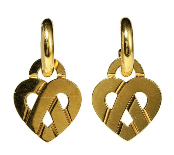 3274. Poiray, créoles retenant des motifs mobiles de cœur ajourés et s...