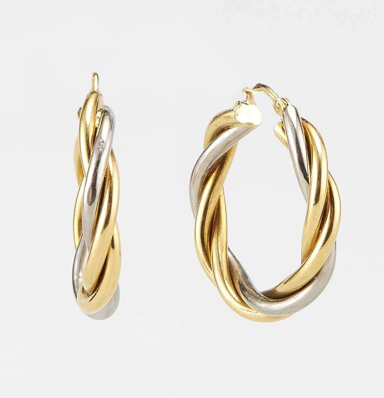 Or et or gris 750 et 585, H 6 et 6,5 cm, poids brut 4 g. Provena...