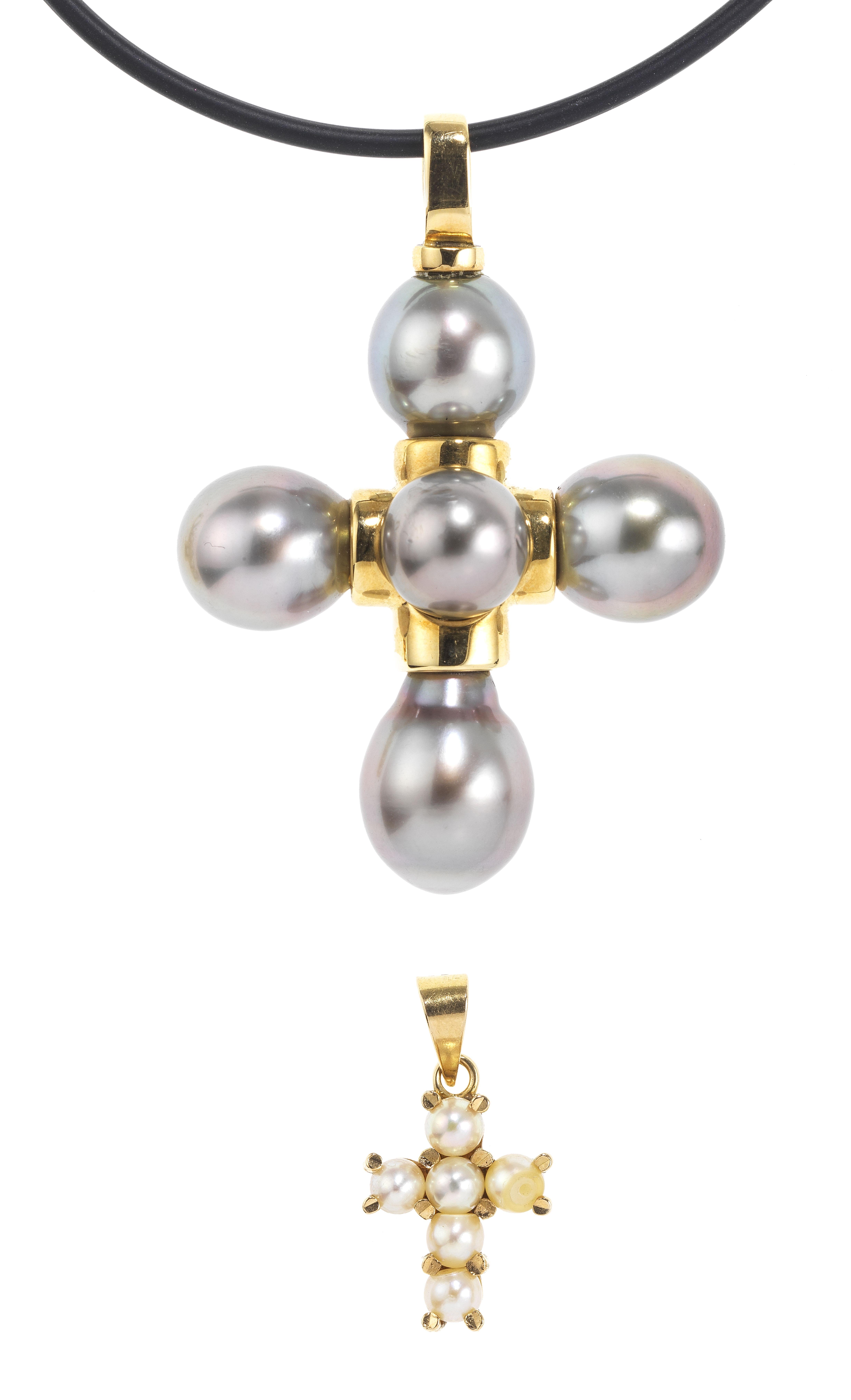 102. Pendentif à motif de croix pavée de diamants hexagonaux en serti...