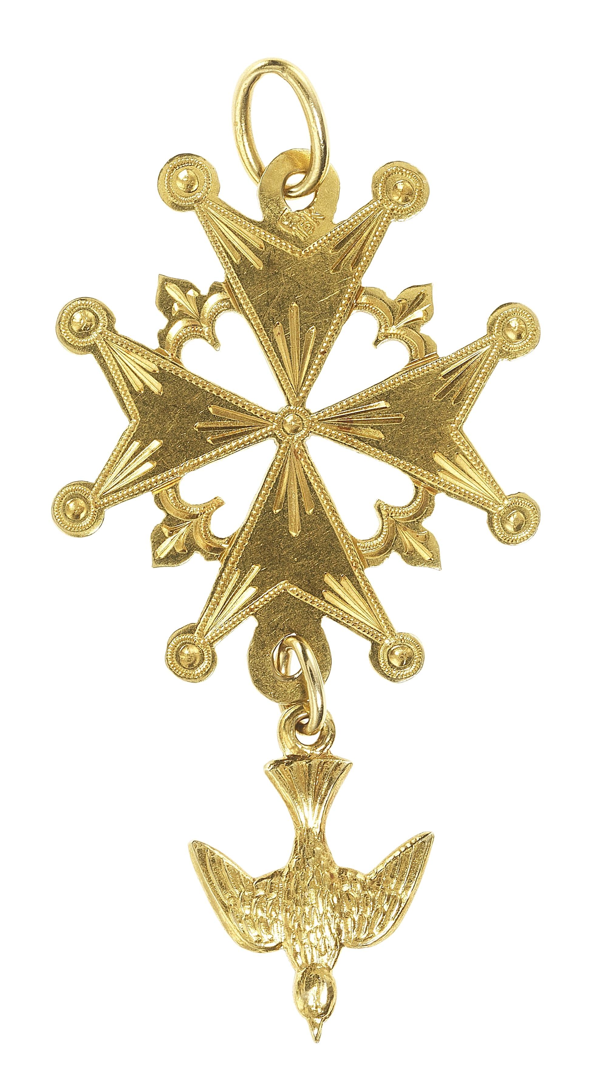 3164. Pendentif à motif de croix centrée d'une turquoise taille caboch...