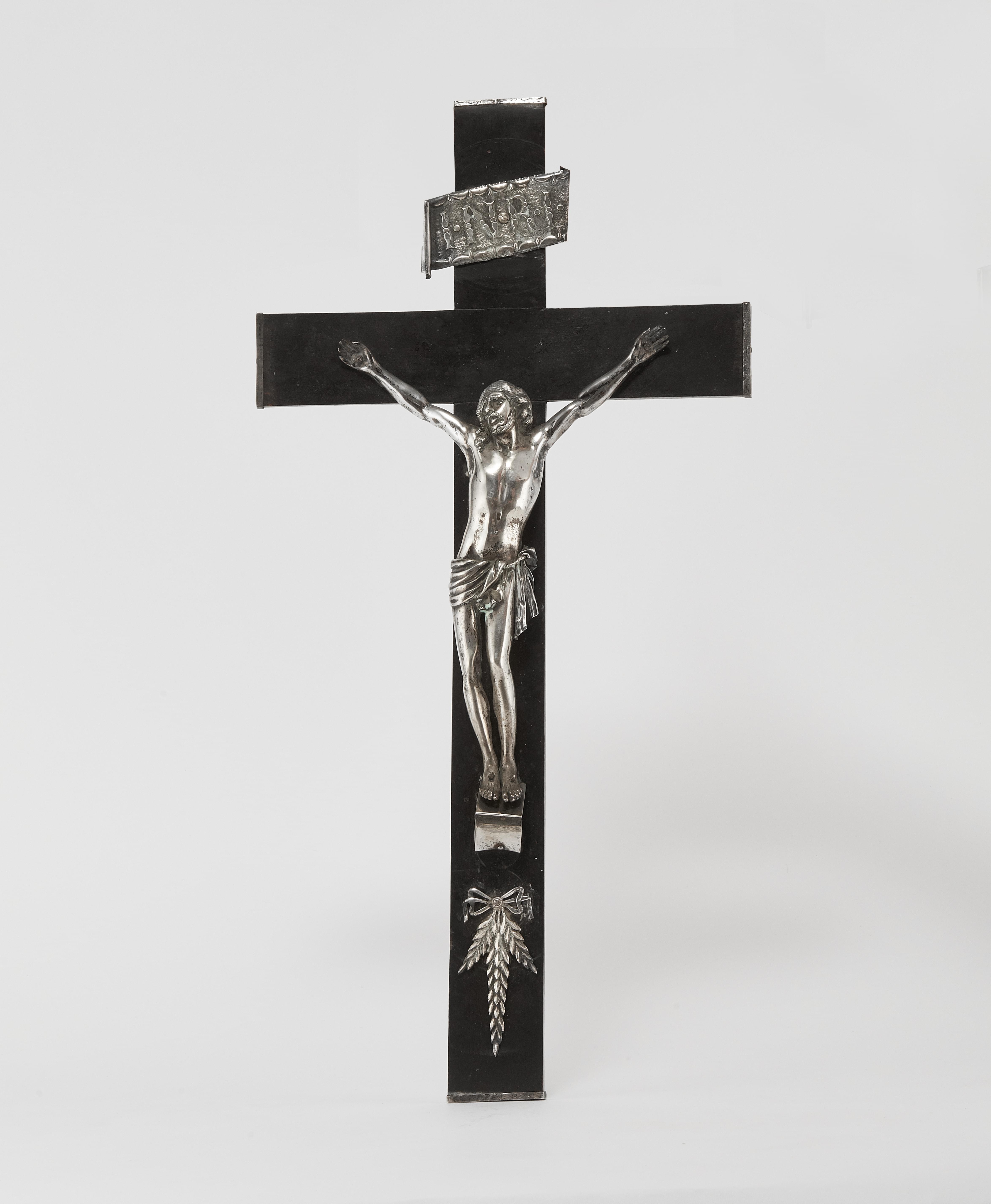 Porcelaine émaillée polychrome, piètement bois, D 61 cm